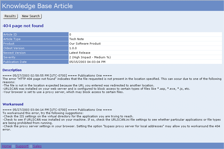 The Item Page is the page that will display the information within a Knowledge Base article. Various aspects of the item Page can be customized as described below.